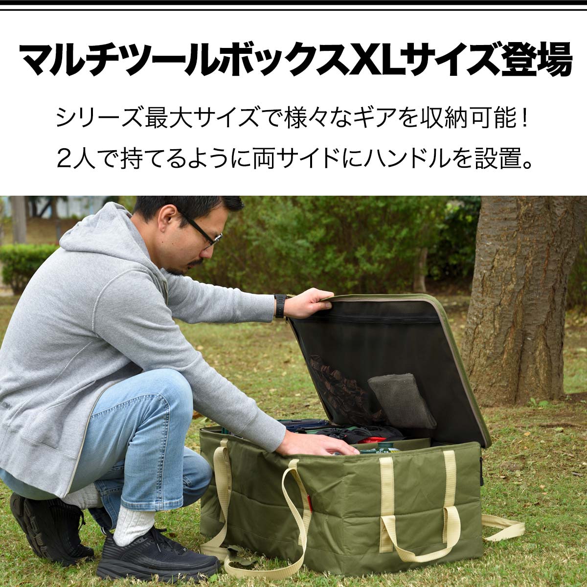 お問合せはこちら ※[店舗管理用 URL]a15504※[品番]【カーキ:a15504】【ブラック:a15505】 マルチツールボックス XLサイズ シリーズ最大サイズがラインナップ! マルチツールボックスXLサイズ登場 大好評のマルチツールボックスにXLサイズが登場! シリーズ最大サイズで様々なギアを収納可能! 2人で手持ちできるように両サイドにハンドル付き! 乱雑になりがちなキャンプギアをまとめて1つに! コンテナタイプのツールボックス コンテナのような大型のマルチツールボックス。
