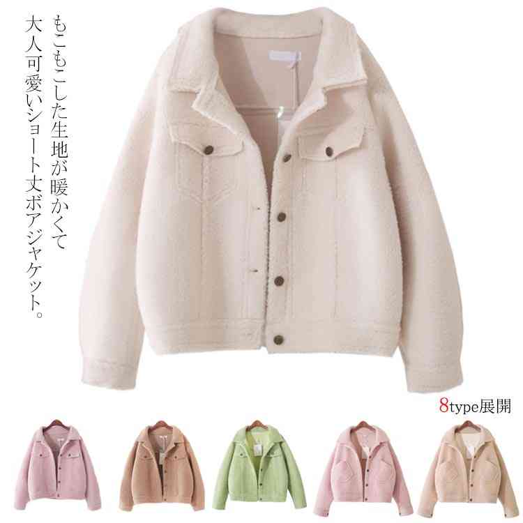 ボアジャケット ボアコート レディース 総ボアアウター もこもこ ブルゾン ファーコート ムートンコート ショート丈 ポケット付き あったか コート ジャケット 防寒 保温 冬物 カジュアル 冬物 秋新作